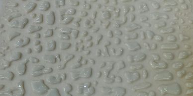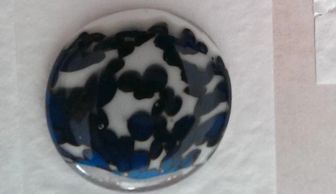 The frax with the cracked powder goes into the kiln for a full fuse at 1470 degrees. When it comes out, little pools of glass have formed. The size will depend on how many cracks there are, since the glass pulls together where it touches.