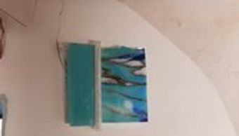 Here I decided to combine a piece of the painted glass with a solid coordinating glass. I cut a piece of white and placed it on edge, to separate the two, for added interest.