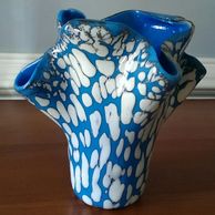 During the slumping process over the mold to form a vase, the glass has stretched due to it's weight. See how the glass pools have elongated when compared to the previous picture. It actually stretched more than I anticipated, and the mold was almost trapped inside! Now that would be one fancy cocktail shaker!